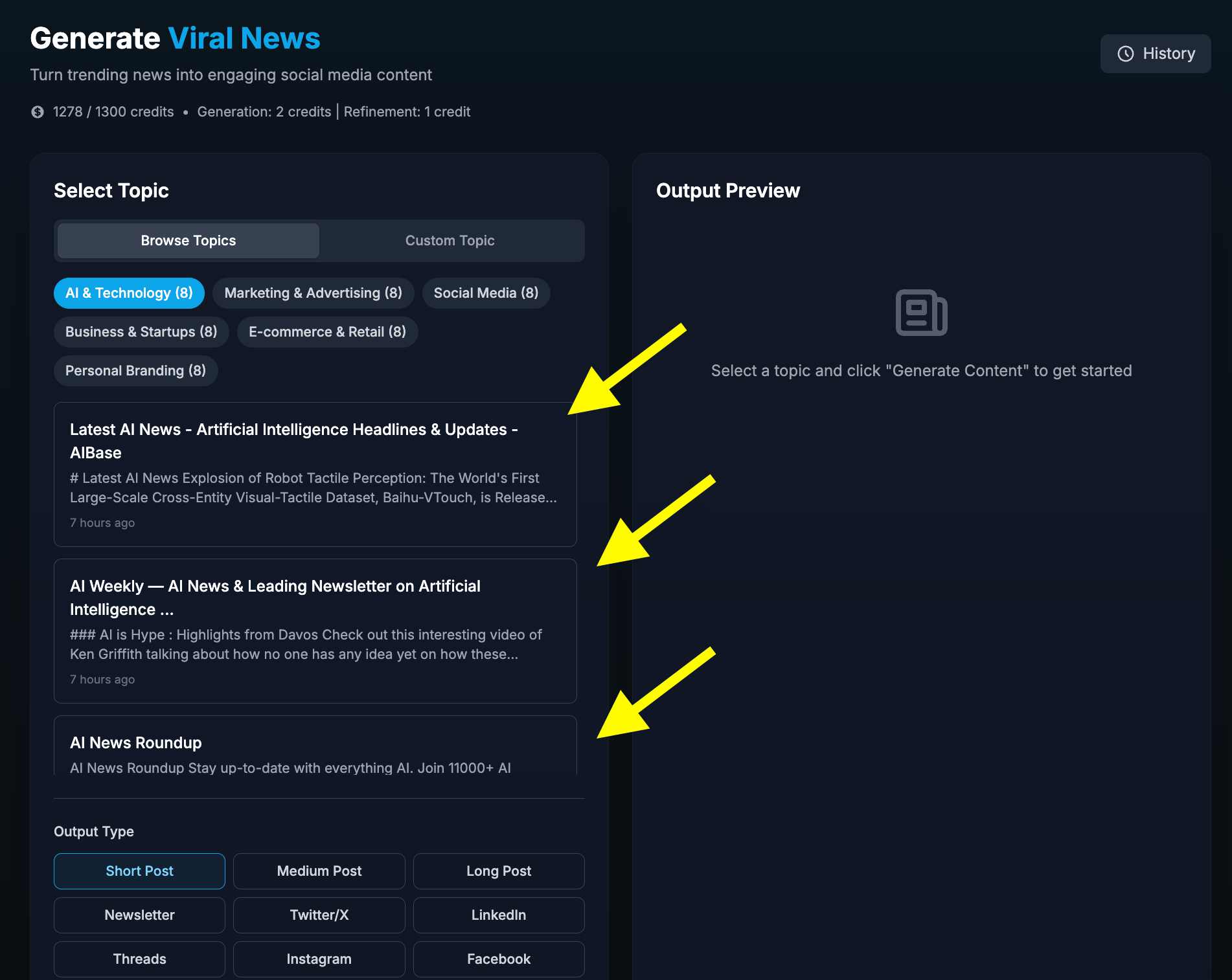 You'll know when news breaks before most people even see it. Or go to viralsky.ai and go to “News Generator.”